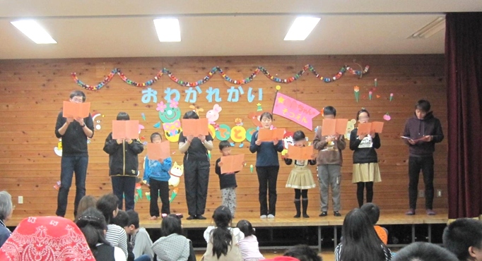 社会へ飛び出す卒園生を、みんなで送り出します。