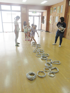 短期大学の2年生2名が施設実習に来られています。休日の2時間程度でレクリエーションを企画してもらい、希望者の子どもたちが参加しました。笑顔がいっぱいで大成功かな!?