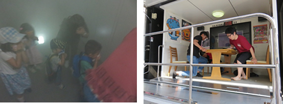 いつ起こるか分からない「地震」や「火災」に対応できるよう、松山市の防災センターへ学習に行きました。火事の煙の疑似体験や、地震体験車で震度7の揺れの体験しました。体験後の園での避難訓練は、いつもよりも真剣に取り組めていました。