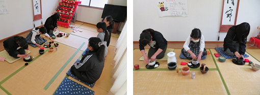 いっぱいお稽古を重ねた子どもたちがお点前を披露し、みんなでお茶とお菓子をいただきます。