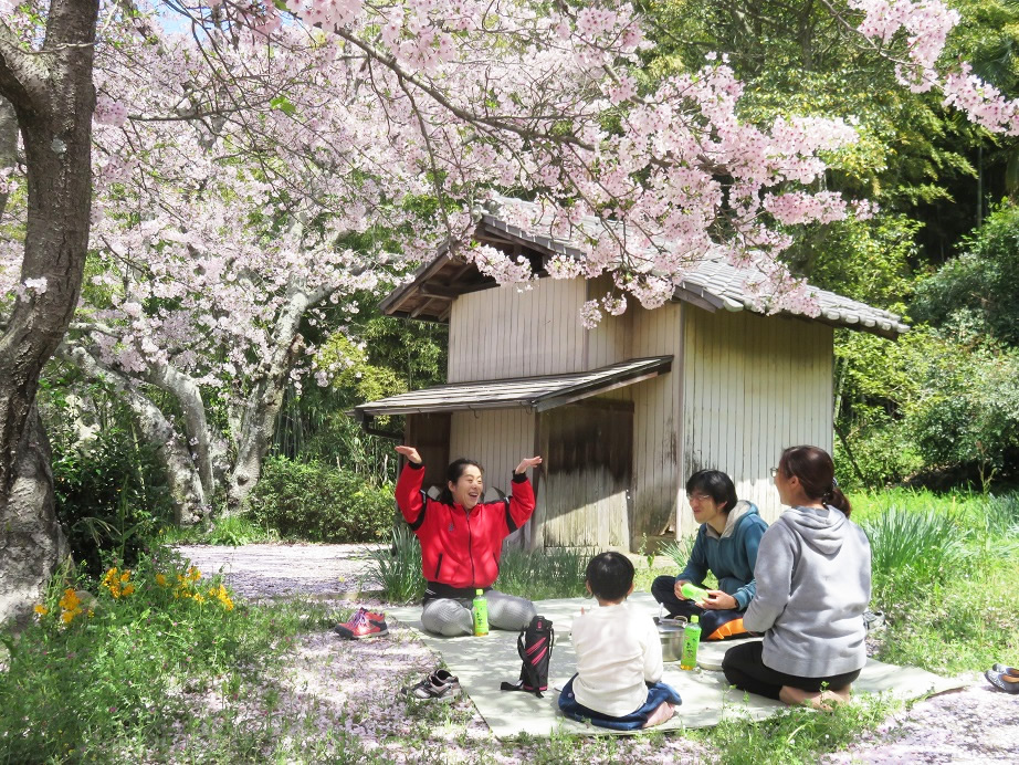園近くの桜の木の下でお昼ご飯をいただきました。いつもよりおいしく感じました。