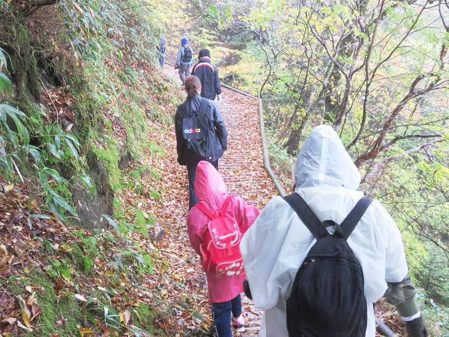 あいにくの雨で頂上までは行けませんでしたが、きれいな紅葉を楽しめました。