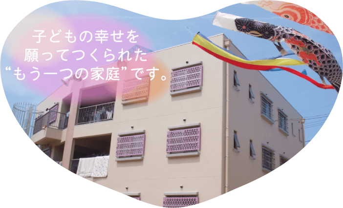 児童福祉法第41条による『児童養護施設』で、乳児を除いて、保護者のない児童、虐待されている児童をその他環境上養護を要する児童を入所させて、これを養護し、あわせて退所した者に対する相談その他の自立のための援助を行うことを目的としています。